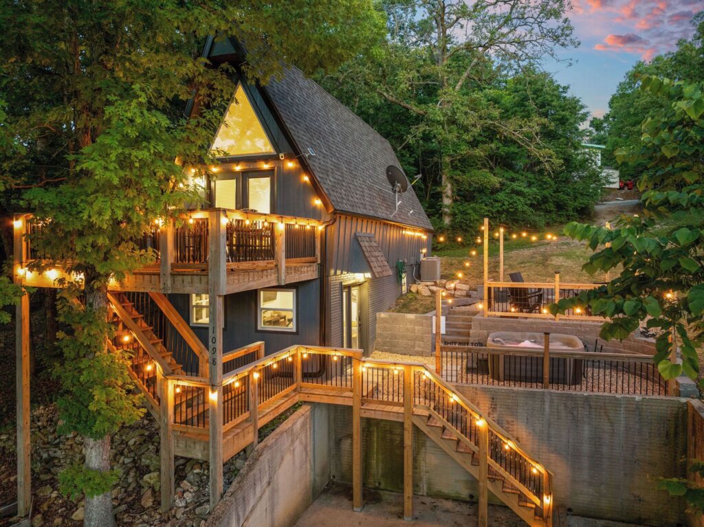 A modern A-frame cabin in the Ozarks with stunning mountain views, perfect for those who want privacy and style. This retreat combines luxury amenities with cozy cabin vibes — ideal for couples, families, or small groups.