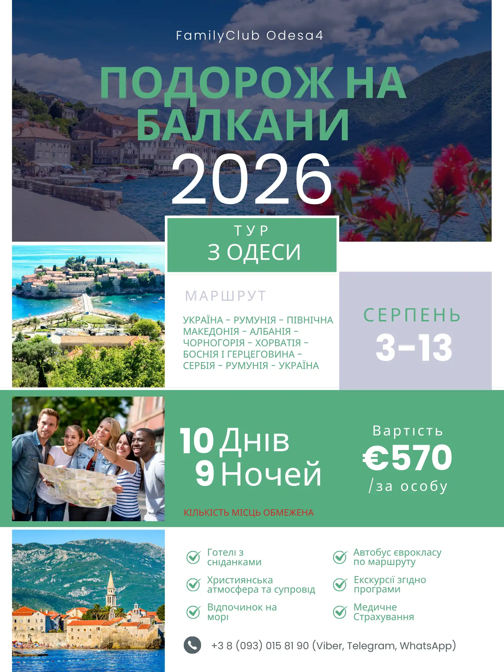 Християнський автобусний тур для відпочинку та подорожі від Чорного моря Одеси до Адріатичного моря Албанії, Чорногорії та Хорватії – без нічних переїздів