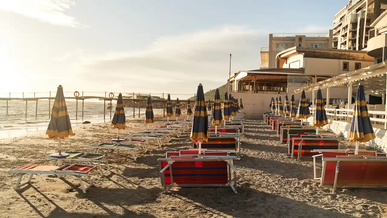 Пляжне обладнання (зонтики, лежаки, рушники). Можна взяти з собою в автобус парасолю, каремат або компактний пляжний тент.
